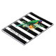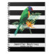 Bandes noires et blanches, perroquets colorés et fleurs oranges aux feuilles verts. Modèle carnet personnalisable