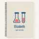 Un carnet en spirale personnalisé avec un dessin mignon d'un tube d'essai et d'un bécher. Parfait pour les types scientifiques.