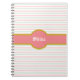Belle menthe rose et Carnet rayé blanc. Le texte brillant peut être customisé.