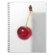 Le cerisier rouge est suspendu au bord de la tasse de porcelaine grise contre l'arrière - plan blanc. Le thème de l'été