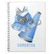 Journal carnet de Cheerleader fait en blanc, avec des graphiques d'une robe de cheerleader bleu et blanc clair et un mégaphone assorti. Le texte bleu clair, en bas, est entièrement personnalisable. Personnalisez le texte pour lire ce que vous voulez. Idéal pour l'école ou à la maison.
