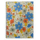 Ce carnet à motifs floraux rétro présente des fleurs et des feuilles dans les tons orange, bleu et jaune.