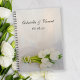 Customisez le joli Carnet Spiral Mariage Tulip Bouquet blanc avec les noms personnels de la mariée et du marié et la date de la cérémonie de mariage du printemps mars, avril ou mai pour créer un livre d'invité ou un livre de conseils aimable. Ce livre botanique de notes nuptiales customisé classe présente une photo florale d'un bouquet de fleurs de tulipes de printemps blanches, collier de perles blanches et voile de mariée avec un arrière - plan satiné blanc.