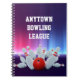 Thème de bowling - 10 broches de bowling frappe avec dix broches et une balle de bowling rouge vif. Placez-vous sur un arrière - plan lumineux multicolore. Personnalisez avec votre nom ou message en caractères blancs.