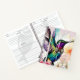 A brushstroke-style design featuring a vibrant hummingbird adorned with a spotted bow tie, its wings fluttering as it hovers gracefully above a nest fille