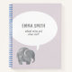 Un éléphant gris mignon avec une simple bulle de texte blanche sourit sur un fond violet lilas pâle. Personnalisez le texte pour faire de ce cahier un produit adapté aux enfants, parfait pour l'école ou la maison. N'oubliez pas d'ajouter vos coordonnées au cas où le cahier se perdrait quelque part.