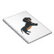 Caderno com a ilustração de um Dachshund com a língua de fora.