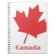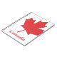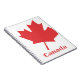 Carnet en spirale blanche avec une feuille d'érable rouge surdimensionnée et Canada en lettres rouges.