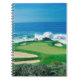 Le carnet est représenté avec une photo d'un beau terrain de golf au bord de l'océan. Customisez cet objet ou achetez tel quel. Image stock