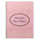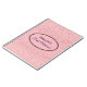 Carnet représenté avec un graphique de petites étoiles en or sur un arrière - plan rose avec l'expression "Carnet de la mariée" à l'intérieur d'une forme ovale avec des bordures coordonnées. Customisez cet article et changez le nom en votre nom ou retirez le nom, changez les couleurs de l'étoile en filtre, couleur arrière - plan ou achetez tel quel. Couleurs dorées, roses et noires.
