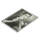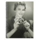 Femme de sourire tenant des cartes de jeu dans le studio, (B&W), marques de portrait | George | AssetID : 57520357