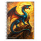 A majestic blue dragon stands atop a rugged mountain peak, wings spread wide against a radiant golden sun halo. The artwork features intricate scales, glowing eyes, and a dramatic sky filled with swirling clouds. Rendered in a vibrant fantasy illustration style, this piece evokes power, mystery, and mythic grandeur, making it a striking and imaginative design.