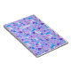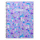 Ce carnet customisé est décoré de mignons champignons illustrés et de fleurs dans une palette de couleurs violet et bleu turquoise onirique.
