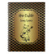 Ce carnet est orné d'un élégant motif de pétoncle noir et or avec un joli graphisme représentant un chat jouant d'une guitare. Le titre dit, "Voici, j'écris." La ligne en dessous du texte du script peut être changée à tout ce que vous souhaitez. Actuellement, le texte montre "Chanson Lyrics". Les écrivains doivent avoir un carnet pratique quand les idées d'une chanson ou d'un poème commencent à couler.