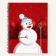 Carnet de bonhomme de neige mignon avec l'illustration d'un bonhomme de neige heureux chantant sur un arrière - plan rouge vif. La neige tombe et les flocons de neige sont partout, le bonheur autour. Ce carnet d'hiver amusant est joyeux et agréable et parfait pour les cadeaux de vacances d'hiver comme Noël.