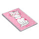 Ce design carnet girly, mignon et moderne présente un dessin animé de chat blanc mignon avec lunettes sur arrière - plan motif pois rose et blanc et a un endroit pour vous d'ajouter votre nom dans une belle typographie. Personnalisez ce produit en ajoutant votre nom au bas . ce sera le design parfait pour tout amoureux des chats de papeterie féline.