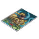 Ce chat de Cheshire d'Alice dans l'imaginaire de conte de fées du pays des merveilles est parfait pour le conte de fées et l'Alice dans des fans du pays des merveilles. Je l'appelle le chat de merveille qu'il utilise des rayures oranges et jaunes et un casquette noir supérieur avec un ruban rose. Il s'assied sur le lit des fleurs vertes et rouges. Derrière lui l'arrière - plan est bleu-foncé avec des remous bleu-clair. La peinture entière est très rêveuse et surréaliste. Belles couleurs vibrantes. Inspiré par le caractère de chat de Cheshire dans une de mes histoires préférées de livre d'enfants, Alice au pays des merveilles.