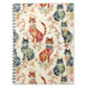 Carnet dans un motif de chats aquarelles en coups de pinceau fluides et tourbillonnants inspirés de l'art chinois, en dégradés de rouge, bleu, vert et noir, se mélangeant harmonieusement avec des feuilles stylisés.