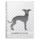 Illustration originale de Destei d'une jolie couleur bleue italien Greyhound / Iggy race dog. L'arrière - plan a un motif d'empreintes de pattes de chien gris. Vous trouverez également une zone de texte personnalisable.