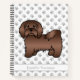 Dessin original de Destei illustrant une jolie robe brune chocolat Bichon Havanais / Chien de race Havanais. Sous le chien il y a une zone de texte personnalisable pour le titre du carnet. L'arrière - plan a un motif d'empreintes de pattes de chien gris.