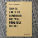 Carnet amusant pour les collègues de bureau, les gestionnaires, les amis de travail ou d'autres professionnels de l'administration et des affaires. Personnalisez le nom à imprimer sur le bas de la couverture "Things I Need to Remember but Will Forget". Les carnets personnalisés sont parfaits pour les anniversaires de travail, les vacances, les échanges de cadeaux de bureau et plus encore!