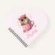 Un carnet en spirale personnalisé avec l'adorable image d'un hibou assis dans une tasse à café. Des coeurs se balançant et un seul rose placé au fond de la tasse.