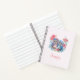 Carnet spiral avec l'image d'une paire de chouettes amoureuses assis ensemble sur une branche d'arbre. Entouré de jolies fleurs bleues, vertes et roses.