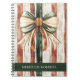 Personalized Christmas Holiday Bow on Rustic Stripes Pattern Notebook... Festive Christmas themed rustic stripes pattern notebook in shades of red, green and gold for holiday gift-giving... or as a colorful notebook journal for yourself. A holiday bow in coordinating colors lets you know this is a special Christmas design. Example text can be easily revised with your own details on the personalization template. Gift idea for business associates, students, and family members.