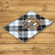 Clan Forbes crête badge entouré d'une sangle et boucle sur l'arrière - plan écossais habillé. Texte personnalisé.