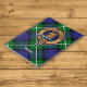 Clan Forbes crête badge entouré d'une sangle et boucle sur l'arrière - plan tartan. Texte personnalisé.