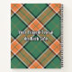 Clan Pollock badge crête entouré d'une sangle et boucle sur l'arrière - plan tartan. Texte personnalisé des deux côtés.