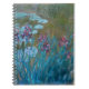 Un beau carnet classique de fleur comportant des iris et des nénuphars, peints par le peintre impressionniste français Claude Monet.