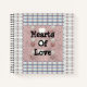 Hearts Of Love Three est un design fantaisiste et ludique qui ne manquera pas de capter le coeur de quiconque ! Ce design artisanal se compose de rayures roses superposées sur un abstrait de coeurs et de fleurs et de rayures bleues et blanches à travers le carnet, le tout dans un motif bleu et blanc ! Le centre a un encart de trois coeurs blancs, rosebuds & fleurs disposés sur un abstrait avec un arrière - plan rose! Le dos est rose !