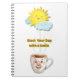 A cute design combining a smiling cartoon coffee cup inside a natural coffee spot.