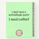 Ce carnet vert pastel a un joyeux et mignon dinosaure de dessin animé avec une tasse de café et un texte "Coffeezilla" sur sa couverture. Ce dessin en dino kawaii est dessiné à la main avec des marqueurs et des crayons colorés. Le texte de couverture "Je n'ai pas besoin d'une citation motivationnelle ! J'ai besoin de café ! !" peut être customisé à tout ce que vous voudriez que votre carnet dise. La couleur arrière - plan est également modifiable. Un carnet parfait et / ou un cadeau pour toute personne qui aime la papeterie mignonne et colorée.