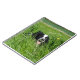 Joyeux Collie noir et blanc jouant dans l'herbe longue.