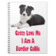 Les colles frontalières gouvernent ! Ce joli bloc-notes comporte un chien coquelicot en noir et blanc bordé contre un arrière - plan blanc crémeux. Les mots "Gotta Love Me I Am A Border Collie" sont imprimés dans une jolie police de caractères rouge.