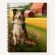 Standard Collie on Farm avec grange et fleurs. Travailler, élever des chiens de ferme. Ajoutez cette image à d'autres produits. Ajoutez aussi votre propre texte. Modifier la couleur arrière - plan.