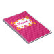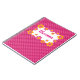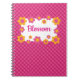 Dessin heureux de fleurs piquées printanières mignonnes. Motif à carreaux fuchsia rose et fille florale jaune bloc-notes personnalisé avec nom.
