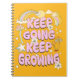 Motivation de style rétro "Continuez à grandir" conception de texte avec champignons, fleurs, étoiles, arc-en-ciel, nuages et décoration de soleil