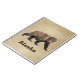Comprend une peinture numérique d'un ours Kodiak sur un parchemin neutre, ou vieux papier, arrière - plan. Le texte "Alaska" apparaît également. L'Ours de Kodiak (Ursus arctos middendorffi), une sous-espèce de l'ours brun, ou grizzli, est le plus grand ours du monde. Un mâle adulte peut mesurer plus de 10 mètres de haut lorsqu'il est debout sur ses pattes postérieures et peser plus de 1500 livres - un spectacle à voir. Un ours du zoo de Bismarck, dans le Dakota du Nord, aurait pesé jusqu'à 2 400 livres. Les ours vivent sur les îles de l'archipel Kodiak de l'Alaska. Aujourd'hui, il y a environ 3500 ours kodiak et leur nombre augmente en raison de l'état généralement excellent de leur habitat, y compris un poing suffisant pour se nourrir. Ils sont appelés "takuka-aq" en Alutiiq, la langue maternelle du peuple dans cette région. On pense que les ours y ont été isolés depuis la fin de la dernière ère glaciaire, il y a plus de 12 000 ans. Bien qu'ils soient le plus grand carnivore terrestre leur régime alimentaire comprend de grandes quantités d'herbe, d'autres plantes et des baies. Aujourd'hui, il y a environ 3500 ours kodiak et leur nombre augmente en raison de l'état généralement excellent de leur habitat, y compris un nombre suffisant de poissons à manger. En raison de l'abondance des ressources alimentaires, les ours Kodiak ont une aire de répartition plus petite que les autres ours bruns et n'ont pas besoin de défendre les territoires. Les Alutiiq chassaient les ours pour leur nourriture, leurs vêtements et leurs outils. Des flèches, des lances et beaucoup de courage étaient nécessaires pour la chasse. Les têtes d'ours étaient généralement laissées dans le champ comme un signe de respect de l'esprit des ours.