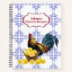 Ce design a un look de ferme méditerranéen. La couverture avant présente un coq avec une corbeille remplie de citrons, sur un motif arrière - plan bleu et blanc. Il y a une zone pour vous d'ajouter votre propre texte. Ces carnets polyvalents sont disponibles en trois styles et sont offerts avec un choix de six couleurs spirales. Optez pour une conception personnelle encore plus poussée en choisissant l'une des huit options de conception de pages, dont College Ruled, Graph et Recipe. L'exemple de photo montre les recettes.