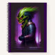 Une tête de démon de dessin animé avec des cheveux verts, des dents pointues et des yeux rouges sur un arrière - plan violet et noir crée un carnet en spirale génial pour n'importe quel ventilateur de métal lourd.