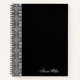 This elegant black notebook features a refined white vector pattern and a customizable name on the cover for a clean, modern look.