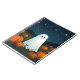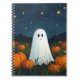 Dans une scène nocturne magique, un fantôme blanc convivial se dresse parmi des citrouilles brillants dans un champ étoilé. Le ciel sombre scintille de formes d'étoiles fantaisistes, créant une atmosphère de charme pour les jeunes lecteurs.