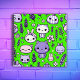 Arrière - plan vert avec de mignons caractères Kawaii violets et fleurs de lavande sur ce carnet en spirale carré, où les pages intérieures peuvent être changées pour répondre à vos besoins, ainsi que différentes spirales de couleur, etc.