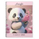 Cute Panda Ours Fleurs Roses Personnaliser Nom Cadeau Carnet Spiral
