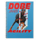 Un Pinscher noir énergique de dobermann exécute les poteaux d'armure sur le carnet de conception d'agilité. Customisez le couvercle inférieur avec le nom ou le choix de votre chien du texte. Grand pour des notes de formation ou de séminaire ou maintenir votre disque d'exposition de chiens.