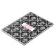 Elégant blanc floral damassé sans couture motif sur arrière - plan noir. Touche de rose. monogramme personnalisé