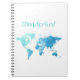 Carnet d'envie de voyager avec une carte du monde dans les aquarelles bleues
